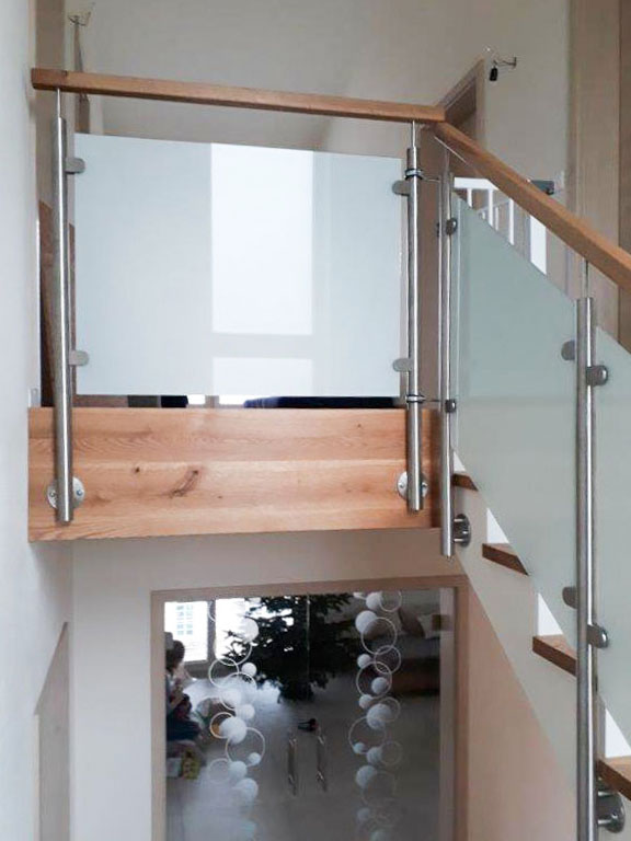 Diese Geländervariante besteht aus einem Handlauf. Die Füllung bei den meisten Geländerarten besteht aus Holz- bzw. Edelstahlstäben. Hier ist die Füllung jedoch aus Glas. Glas ist ein vielseitig einsetzbarer Werkstoff mit vielen Facetten. Die Geländerfüllung ist hierbei in Segmente unterteilt: Diese Segmente können in einen Holz- bzw. Edelstahlrahmen gefasst werden oder es kann komplett auf den Rahmen verzichtet werden. Auch hier sind Ihren Vorstellungen keine Grenzen gesetzt.